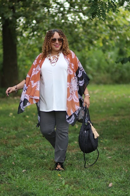 Here in NYC we don't really get full on Fall weather till late September, early October. So in between that time I like to make sure I get pieces that I can wear now while it's still warm and easily transition into the cooler weather. Getting some great layering pieces are key to achieving this. This Woodleaf Kimono literally was calling my name when I saw it on the new arrivals. I was so drawn to the beautiful leaf print and neutral colors. Not to mention how lightweight and flowy it was. I also loved how much I can do with it. Besides wearing it as is, over their Timeless Cutout Tunic Tank and uber comfortable Grey Twill Jeggings, I could wear it belted with a nice chunky belt for a dressier pulled together look. Or I could tie the front in a knot for a fun and casual vibe. What's even better is every piece from this look will easily transition into Fall with out a problem. You guys already know how much I love items that can work double duty. I can use each piece individually as well with other items in my closet and get the most out of them. Oh and let's not forget to accessorize with some cute jewelry like this Sierra Dream Necklace and Bracelet set to complete the look.